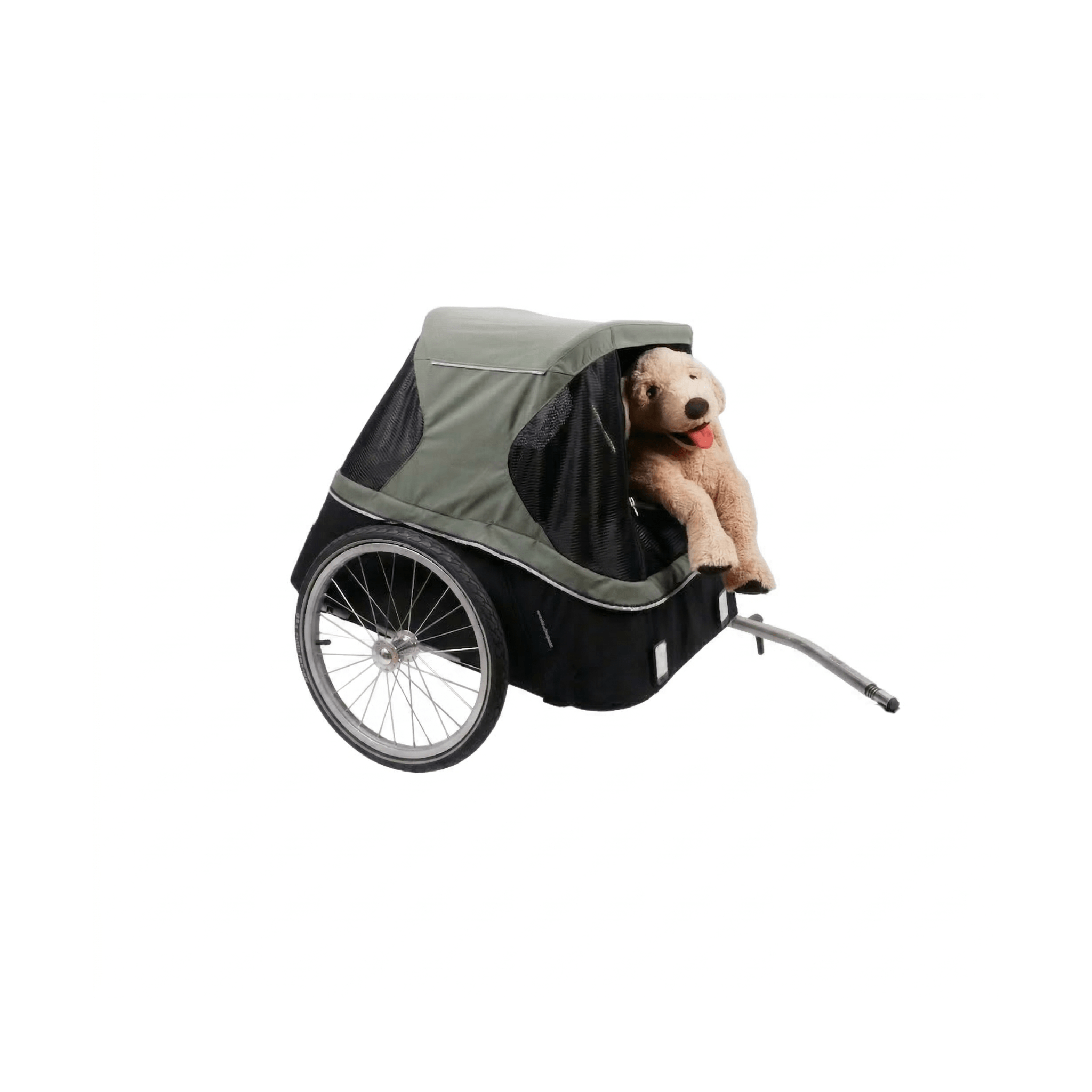 Onze hondentrailer is ook geschikt om achter een 16-inch fiets te bevestigen, bijvoorbeeld een Brompton vouwfiets. Hiervoor sturen wij een kortere dissel én een Brompton trekhaak mee. Geef bij de uitcheck aan dat je dit wenst, dan passen wij het pakket aan!